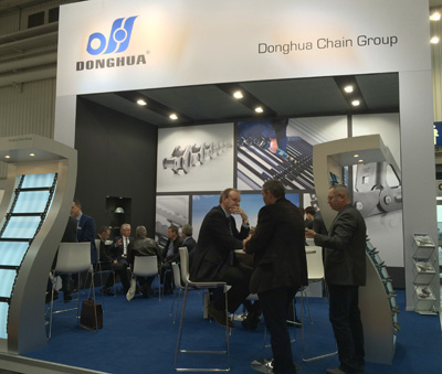 東華展廳面積60多平方米,展位設計簡潔大氣,用傳動鏈、喂入鏈組件、提升鏈組件、捆草鏈等鏈條非常明了地展示了東華農機鏈的產品范圍、質量及生產能力,墻上幾張圖清晰的顯示了東華荷蘭組裝喂入鏈和橡膠鏈的能力,以及東華海外公司的分布情況,給客戶留下了東華品質第一的良好印象。