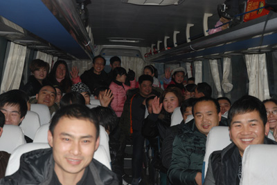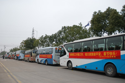 今年春節,公司在安徽六安、江西廣豐、河南鄭州、湖北武漢、湖南長沙等員工較集中的方向設置了10條線路的包車,除利用其他方式回鄉的員工,共有365人乘坐包車。在傳動鏈事業部工作的江西員工袁根英說,以前每年回家都很難買到火車票,而且要到很遠的蕭山南站坐火車很不方便,自從近年公司組織包車送他們回家后,她說又方便又省心了,感覺很溫暖,企業為員工考慮的很周到,感激之情溢于言表。