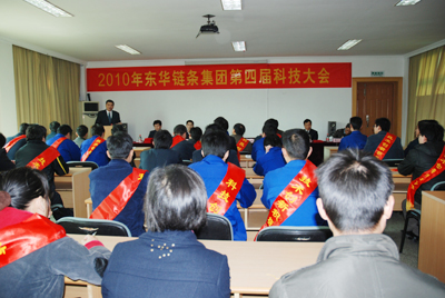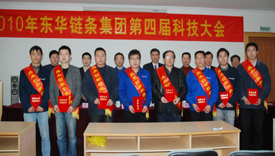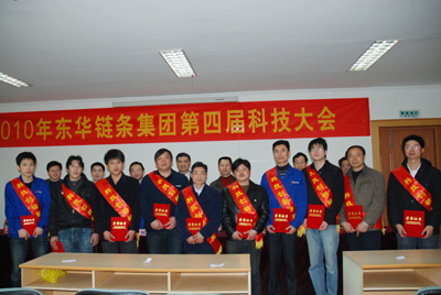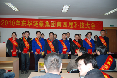在談到2010年技術創新工作時,張總提出六方面要求,一是制訂科技創新目標,包括技術創新項目41項,推進項目責任制,確保項目的完成;二是進一步推進企業標準化工作,積極參加ISO/TC100組織活動,企業標準達到國外一流的鏈條制造企業的標準;三是加強博士后工作站、院士工作站、省技術中心等多個平臺的建設,同時十分重視和國內外研發機構、大專院校、科技開發型公司、專業人才的合作,不斷提升東華的研發能力和技術水平。培養高素質的研發人才,并不斷引進、留住國內外各類專業技術人才,逐步實現國內外優秀人才的集聚;四是各事業部要從提升質量保證能力和勞動生產率方面鼓勵并抓好科技創新和雙革四新工作,創新項目應包括科技、安全、環保、節能、減排、成本控制等重要領域;五是我們要與國內外科研機構、專業人才合作,破解國外的專利技術壁壘,并不斷突破,自主創新,培育核心競爭力;六是加大技改投入,特別是對提升產品質量保證能力和提高勞動生產率的工藝工裝的研發、引入,包括自動化檢測方面的投入,以提升產品質量,實現全過程的質量保證能力。特別是發動機正時系統和變速箱鏈條的研發。