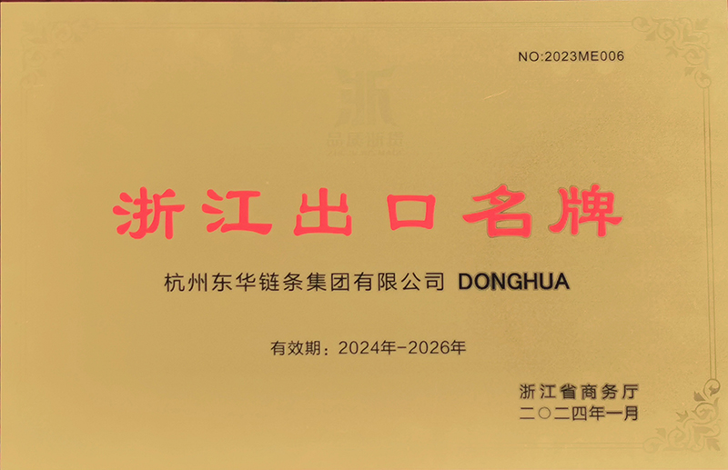 2月4日,省商務(wù)廳召開(kāi)全省外貿(mào)工作會(huì)議暨外貿(mào)工作現(xiàn)場(chǎng)推進(jìn)會(huì)。會(huì)上,全省各商務(wù)部門(mén)介紹了2023年外貿(mào)工作的基本情況、主要亮點(diǎn)、經(jīng)驗(yàn)做法和2024年工作思路,同時(shí)舉行了省級(jí)出口名牌企業(yè),省級(jí)海外倉(cāng)授牌儀式。東華鏈條“DONGHUA”品牌通過(guò)浙江出口名牌復(fù)評(píng)。