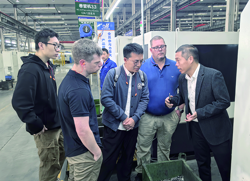 客戶首站參觀了生產(chǎn)車間,依次考察了原材料檢驗、工序加工、數(shù)控加工、熱處理、表面處理、裝配及包裝上油等全流程。車間整潔的環(huán)境、先進(jìn)的數(shù)智化設(shè)備以及員工專注的專業(yè)態(tài)度,獲得了客戶的充分肯定。雙方在參觀過程中不時駐足,就具體工藝細(xì)節(jié)展開現(xiàn)場探討。嚴(yán)謹(jǐn)?shù)牟僮髁鞒膛c精細(xì)的質(zhì)量管控體系,進(jìn)一步向客戶展現(xiàn)了興化公司對產(chǎn)品品質(zhì)的極致追求。