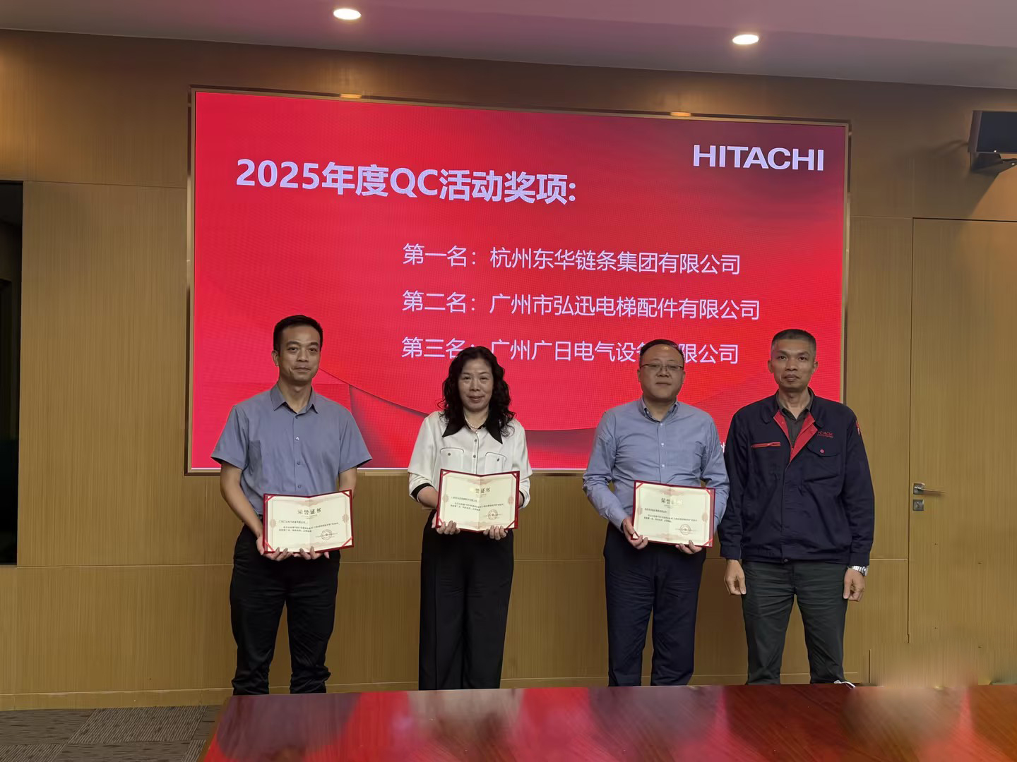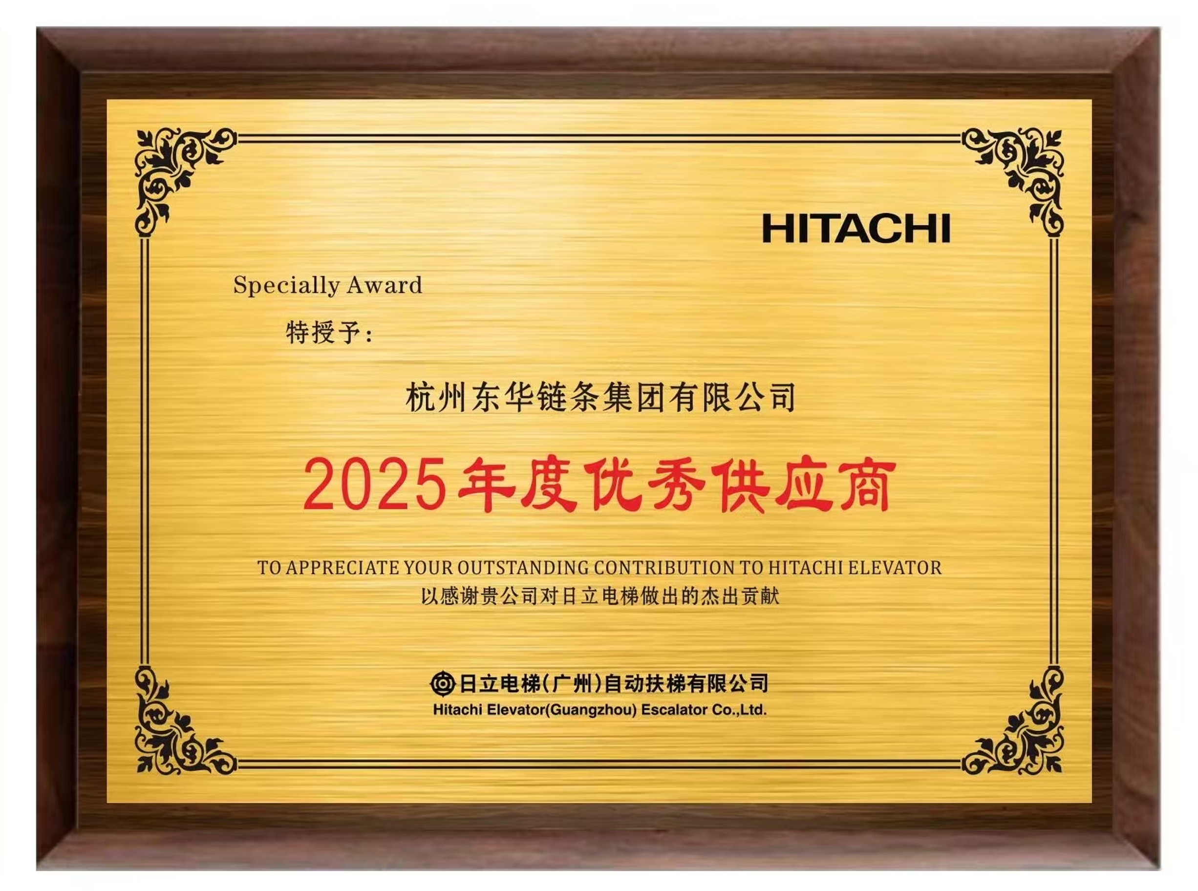 4月17日,日立電梯(廣州)自動扶梯有限公司召開年度供應商大會。東華鏈條憑借其在產(chǎn)品質(zhì)量、交付服務及技術創(chuàng)新方面的綜合表現(xiàn),榮獲日立電梯“2025年優(yōu)秀供應商”獎。與此同時,在備受關注的“日立扶梯QC小組成果現(xiàn)場評審”中,東華鏈條從眾多參評單位中脫穎而出,獲得第一名。東華鏈條扶梯工程鏈事業(yè)部總經(jīng)理汪希代表東華上臺領獎。