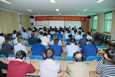 10月15日,在雄壯的國歌聲中,東華鏈條集團黨委召開黨員大會,進行換屆選舉,順利產生新一屆黨委領導班子。參加會議的有余杭經濟技術開發區“兩新”工委工會主席嚴月明、黨委書記魯小林及黨委領導班子、黨員代表80余人。
