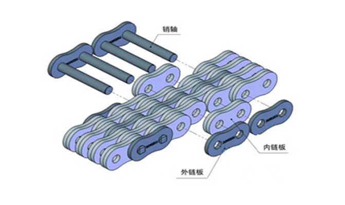 ● 堆高機用板式鏈是由標準板式鏈派生出來的一種特殊用途的板式鏈,主要用于港口集裝箱空箱堆高機,能滿足承載重量大、提升高度高等特點;